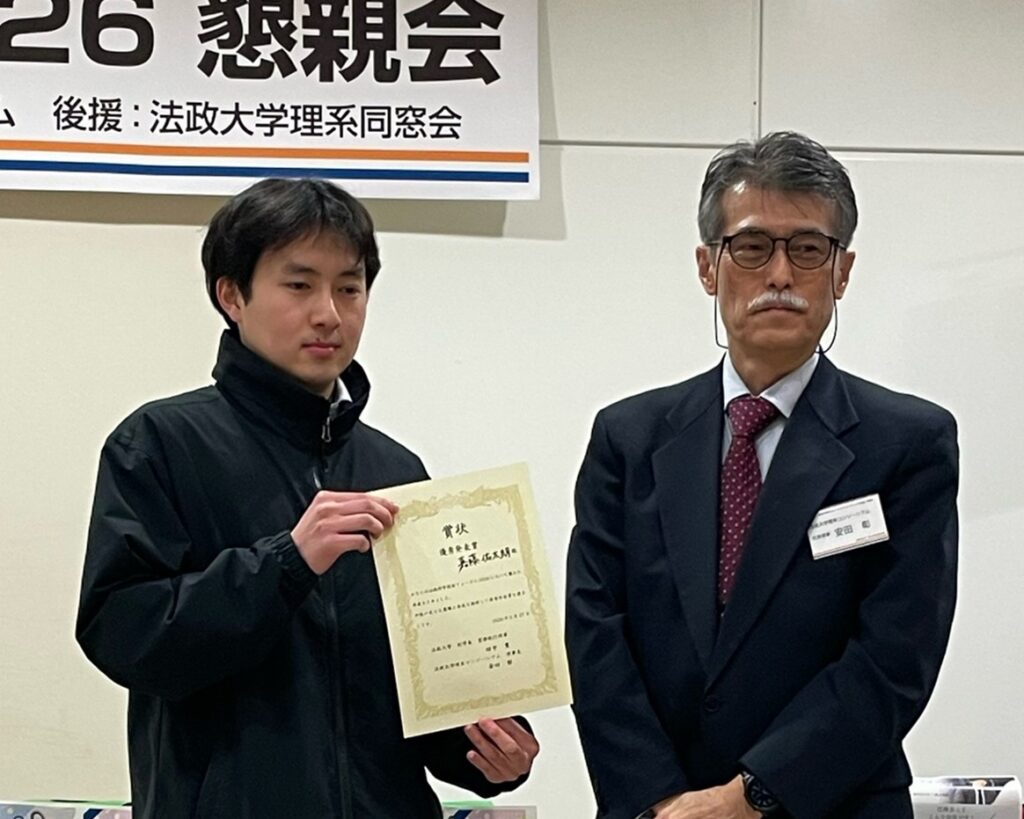 また、システム理工学専攻・創生科学系の嘉藤 佑太朗さん(小林研究室所属・M1、発表タイトル「悪天候下での自動運転に向けた3D LiDARノイズ除去深層学習モデルの開発」)が優秀発表賞に選ばれました。おめでとうございます。